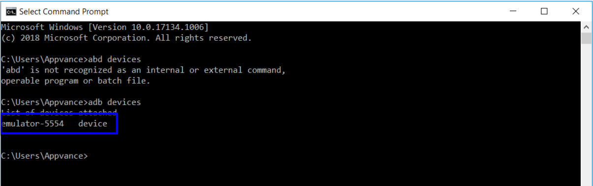 It will list all the running devices along with the UDID, in the above example "emulator-5554" is the UDID of the running device.