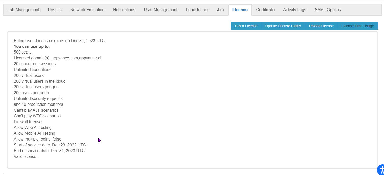 Buy a License opens the Appvance website. From there you can contact Appvance Support to investigate licensing details.
