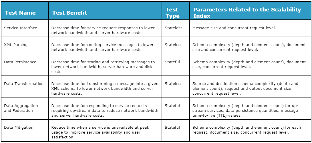 The parameters related to the Scalability Index define the test inputs showing the Scalability Index – the usage pattern showing service performance expectations when in production