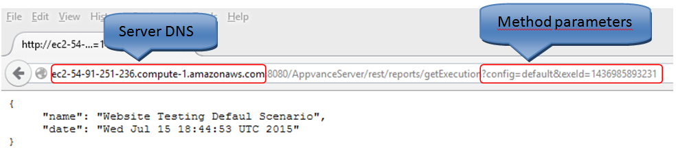 The REST call for the methods listed below; use a standard syntax with a base URL which is followed by the specific REST method and parameters.