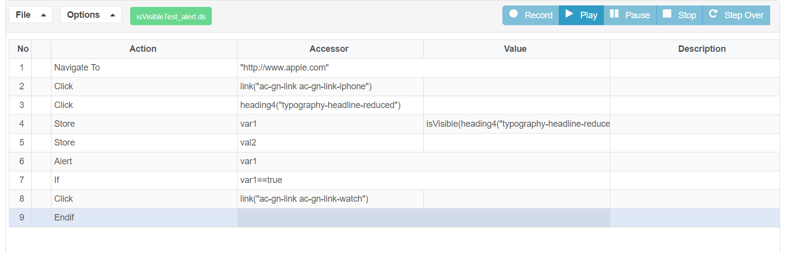 Alerts the message on the browser, This is a handy Action API used for debugging purposes more like a logging API, it alerts with the message on the browser or can be used to check what is stored in a variable during run time.