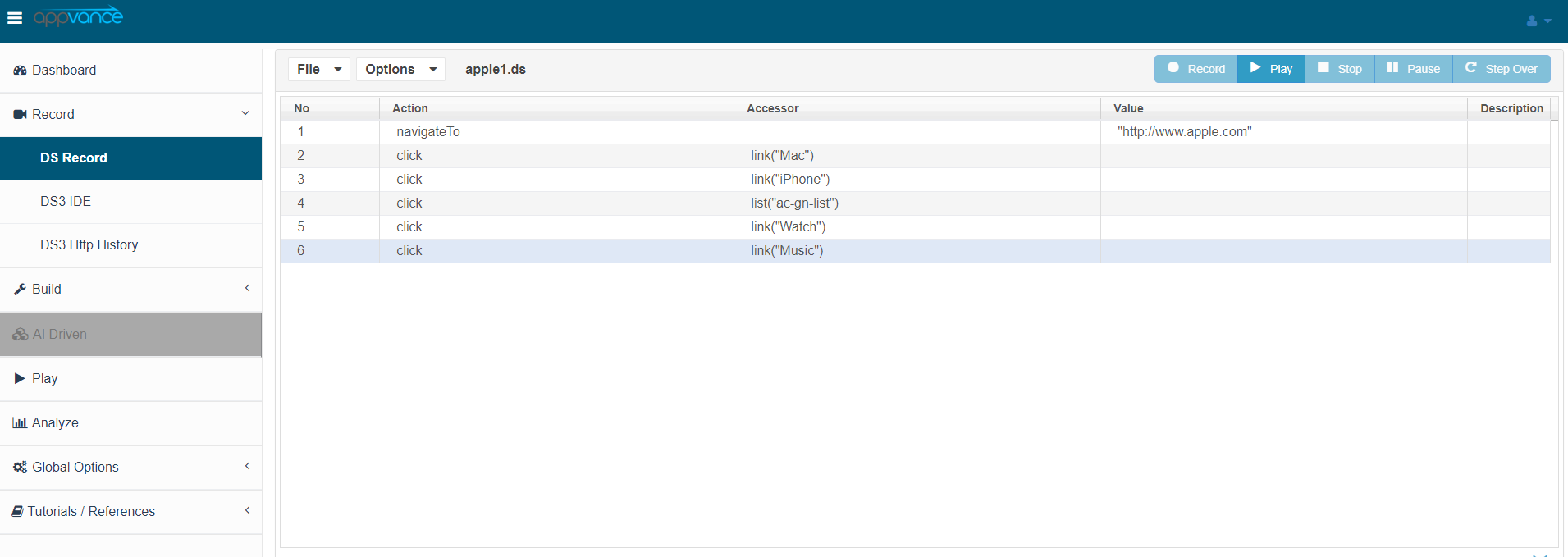 We will use the "Apple website" to create a sample Appvance Designer Script.