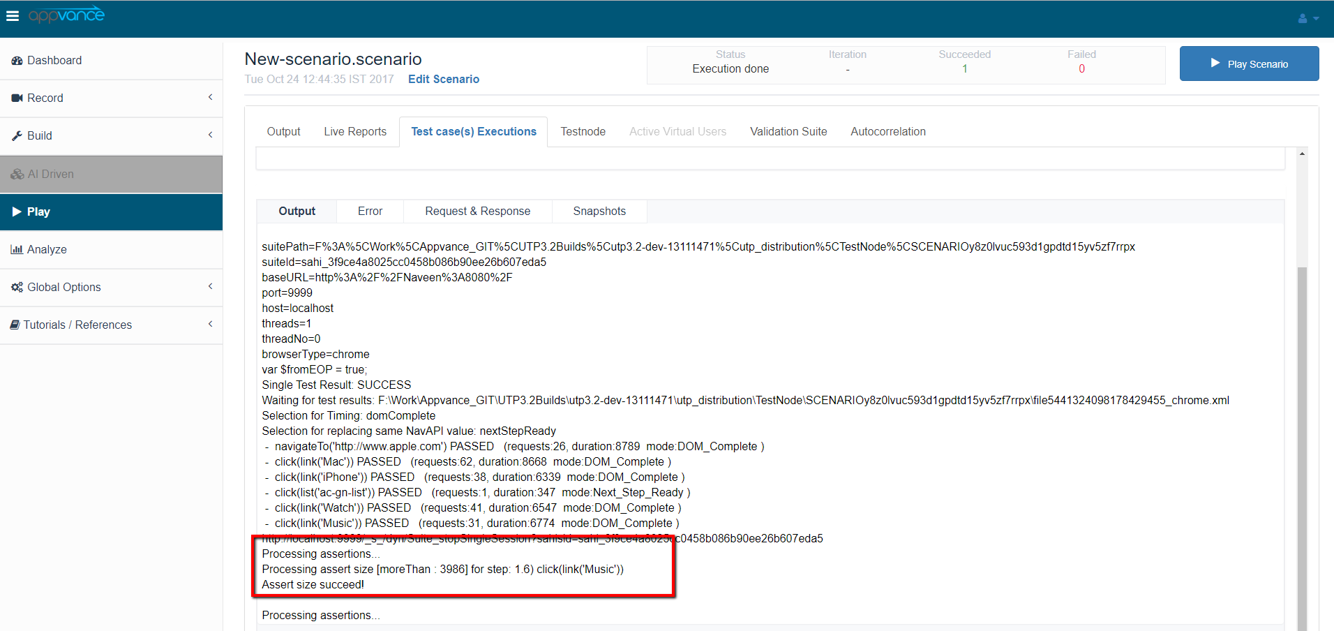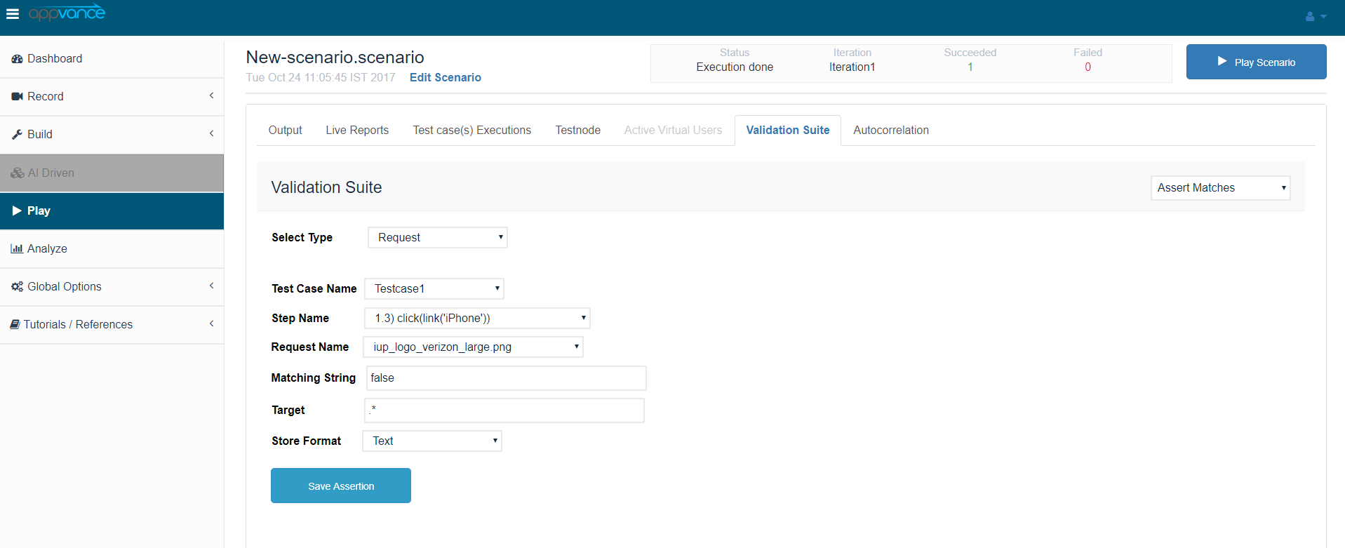 This feature is to validate the request and response of the Appvance Designer script and validate the responses of the Appvance Designer script by adding assertions.